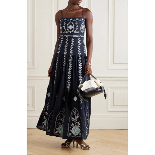 AGUA BY AGUA BENDITA Lima Relicario embroidered linen maxi dress