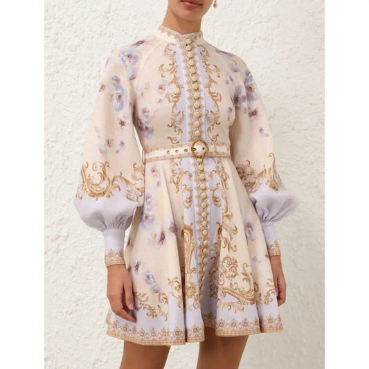 Zimmermann Hypnotic Buttoned Mini Dress in Blue Floral AU 1 US 6