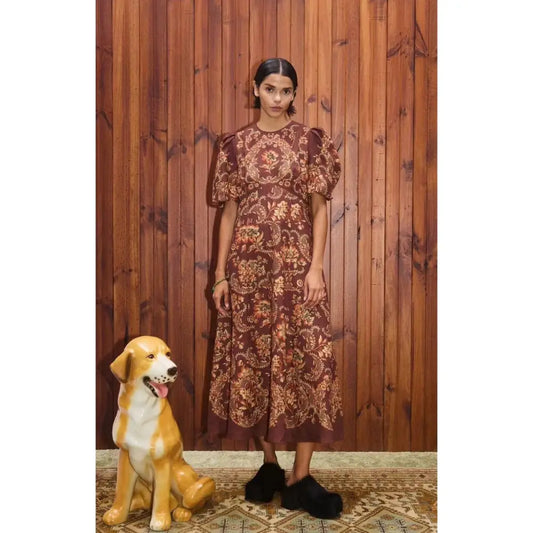ALEMAIS fletcher puff-sleeve ramie midi dress