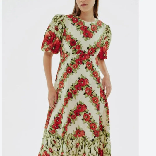 Ulla Johnson Anais White Floral Printed Dress Moonstone