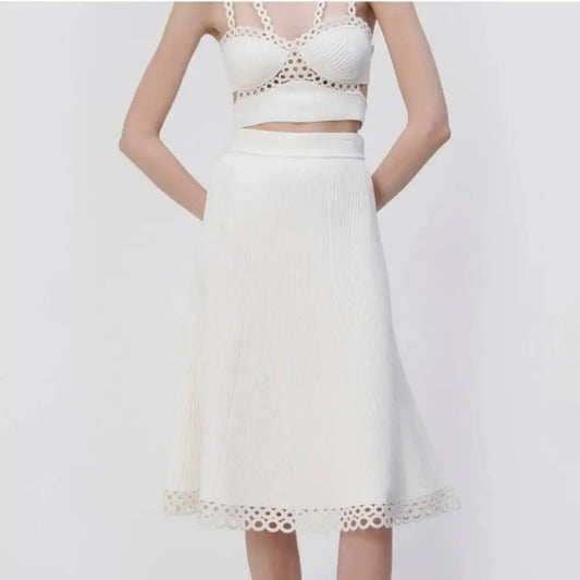 Jonathan Simkhai Livina Crochet Rings Midi Skirt in White