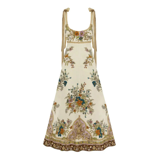 Camilla Daisy Chains Floral Linen-Silk Midi-Dress
