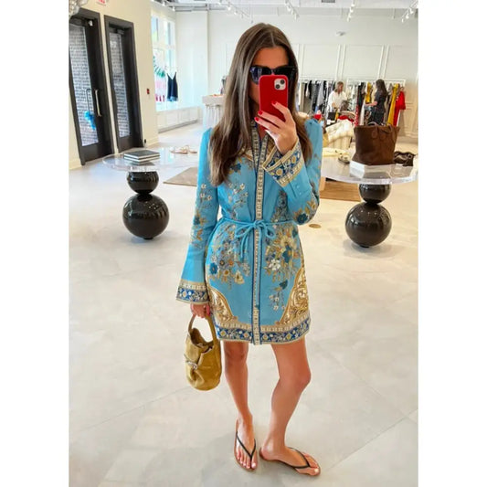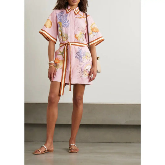 Alemais + Sam Pauletto Nereids belted printed linen-gauze mini shirt dress