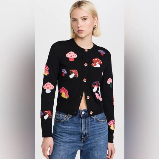 Alice + Olivia Ruthy Mushroom Wool-Blend Cardigan