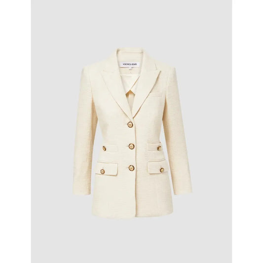 Veronica Beard Terre Cotton Dickey Jacket Off-White Single-Breasted Jacket