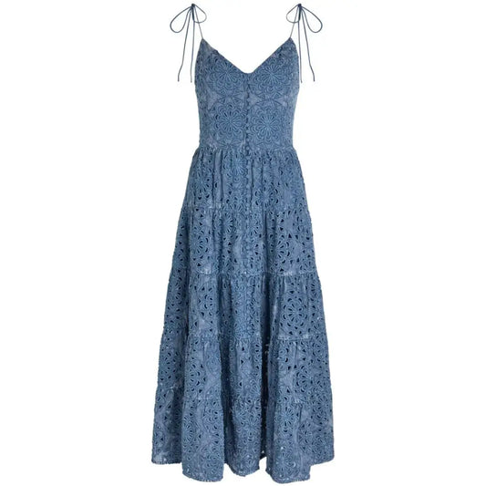 Alice + Olivia Shanti Embroidered Chambray Midi Dress