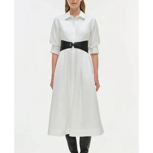 ALEMAIS fletcher puff-sleeve ramie midi dress