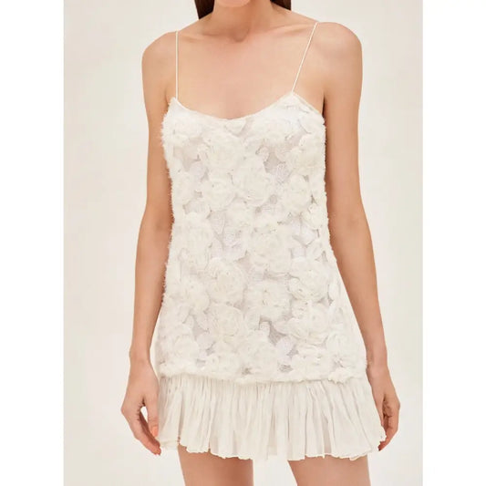 Rebecca Vallance White Floral Guinevere Halter Gown Maxi