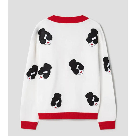 Alice + Olivia Bradley Staceface Short Cardigan - Soft White/Bright Ruby