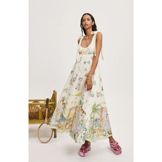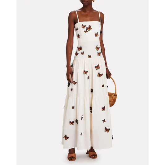 Agua By Agua Bendita Lima Embroidered Butterfly Linen Maxi Dress