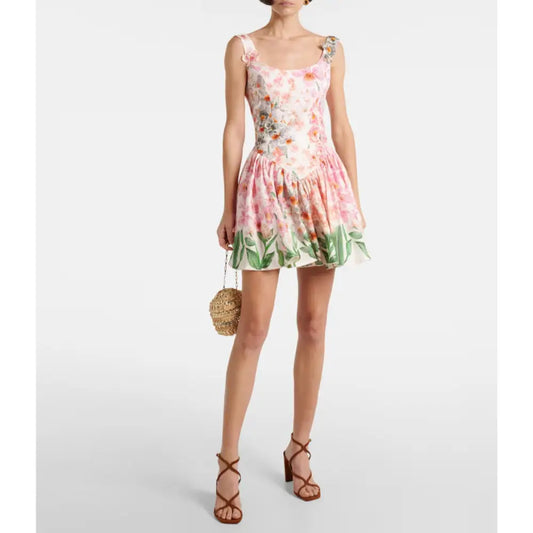 Agua by Agua Bendita Pluma Jardinera linen minidress