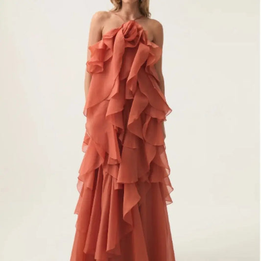 AJE Pandorea Layered Maxi Dress Floral Ruffle Coral Clay