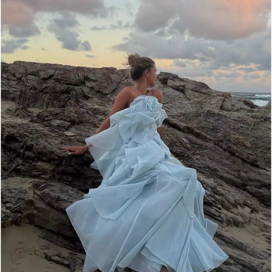 Aje Pandorea Layered Maxi Dress Silver Blue