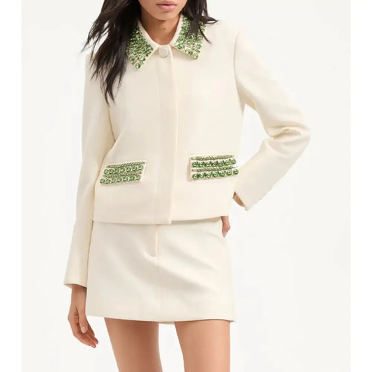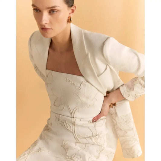 Veronica Beard Terre Cotton Dickey Jacket Off-White Single-Breasted Jacket